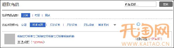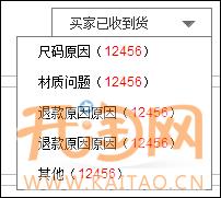 3、黑色框內(nèi)“退款原因”默認(rèn)展現(xiàn)退款量最高的4大退款原因和其他原因,當(dāng)賣家鼠標(biāo)移至其他原因,會(huì)出現(xiàn)除已展現(xiàn)的4大原因外的其他退款原因??蛇x擇。當(dāng)賣家選擇某個(gè)退款原因后,寶貝列表會(huì)展現(xiàn)該退款原因下的寶貝列表。頁面展現(xiàn)該商品標(biāo)題、圖片、退款成功總量和該退款原因的退款成功量。