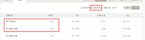 如圖所示,大部分賣家還是更注重淘寶免流量費,就像大家自然而然作出的第一反應那樣;但是,看看同行優(yōu)秀的,已經(jīng)開始籌備獲取無線終端的流量了: