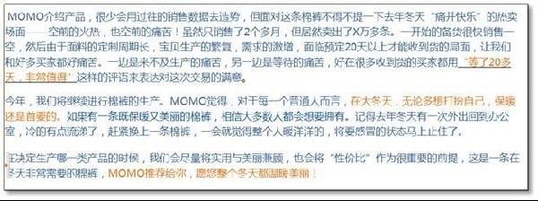 解析:賣家一條普普通通的棉褲,加上了過去一年“痛并快樂“著的經(jīng)歷,感覺瞬時鮮活和靈動了。而”保暖還是首要的“溫馨提示,讓買家在這個大冬天也感到了一陣暖流?!睂嵱门c美麗兼顧“,寶貝詳情 頁面也要感性與理性兼顧。