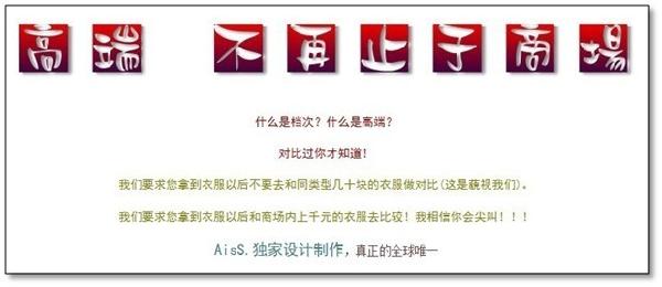 解析:這位賣家在寶貝詳情頁面中加入了以下介紹。高端重新下了一個新的定義。"讓你尖叫"的設(shè)計理念打破了傳統(tǒng)意義上的純賣貨,讓買家可以有更多的想象空間,同時將這個概念深化,那就是高端的產(chǎn)品,一般的價位,讓你感受到真正的獨家設(shè)計。