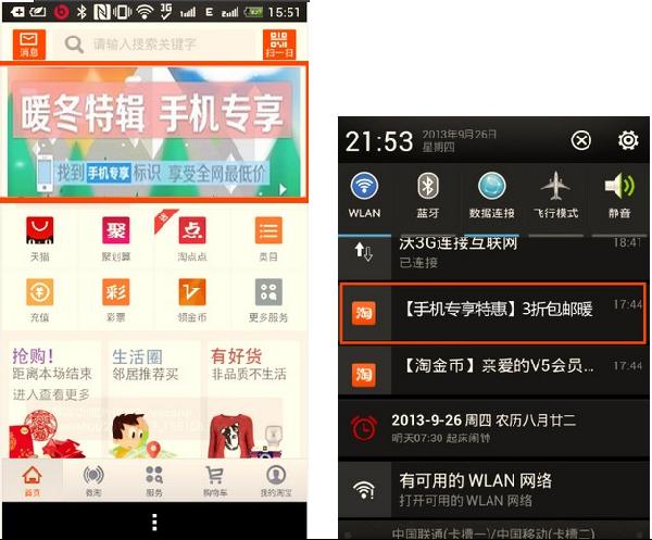 3、不定期的手機(jī)專享價(jià)活動,在消費(fèi)者端持續(xù)曝光(手機(jī)淘寶首焦、PUSH資源推廣);