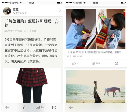 將顧客不斷轉換成為商家的“粉絲”,由普通的買賣關系轉化成為忠誠度和信任度更強的粉絲關系,這是淘寶一直尋求突破的領域,也是淘寶最終的目的。2013年10月6日,微淘賬號“綻放”發(fā)出了一條瘦腿彈力打底連褲襪的推薦信息廣播,給出售打底襪的某賣家做了一次“友情推薦”。當天活動結束后,此信息就帶來了近千訂單量,成交額也接近20萬?!熬`放”是一家4皇冠的女裝店鋪,其經(jīng)常幫助一些店鋪做友情推薦,其每條廣播的營銷效果力度可以媲美團購,而成功的秘訣就在于粉絲經(jīng)濟?;诜劢z群的粘性信任和微淘的移動特性,“綻放”可以隨時隨地的進行移動導購推薦,很好地踐行了一種基于粉絲經(jīng)濟的達人移動電商模式。