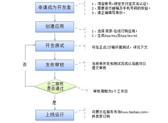 小二的審核工作一般需要5個工作日,如果審核通過,就可以正常使用平臺業(yè)務(wù)了。不通過的,則需要重新回到開發(fā)測試哪里,填寫正確的信息,重新申請。