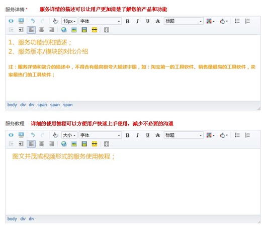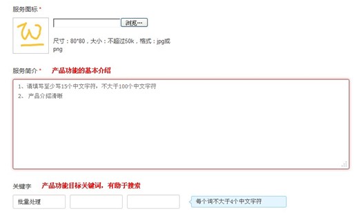 2)填寫好相關(guān)的服務(wù)信息,具體內(nèi)容包括了:服務(wù)簡介、服務(wù)關(guān)鍵詞、服務(wù)詳情、服務(wù)教程等,均需體現(xiàn)創(chuàng)建功能的相關(guān)介紹。