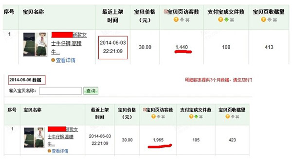 2)6號(hào)還不是這款寶貝的下架時(shí)間,所以表中的數(shù)據(jù)跟平時(shí)是差不多的。