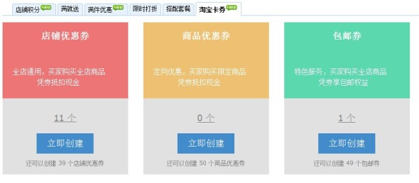 在賣家中心的聯(lián)合營(yíng)銷中,無(wú)線端優(yōu)惠券分為店鋪優(yōu)惠券和商品優(yōu)惠券以及包郵券三種。