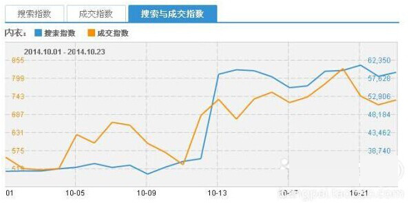 下圖為近期內(nèi)衣的搜索指數(shù)和成交指數(shù):