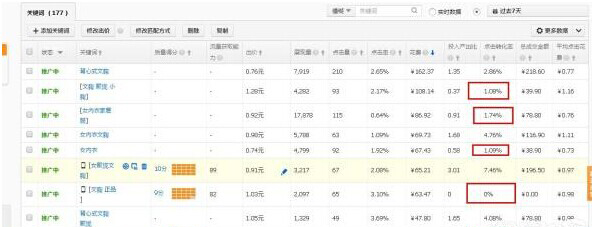 淘寶直通車帶來(lái)的流量無(wú)限接近于自然搜索流量,所以淘寶直通車的寶貝轉(zhuǎn)化率也應(yīng)該做到無(wú)限接近自然搜索的轉(zhuǎn)化率,這時(shí)我們可以查看直通車后臺(tái),把沒(méi)用的關(guān)鍵詞刪除點(diǎn),以提升ROI。舉例來(lái)說(shuō):