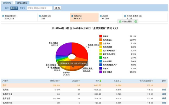 商家在做網銷寶時,要主推的東西肯定是與你產品相關的主推關鍵詞了。若你報表里面的關鍵詞占有率占不到總推廣的40%,就要調整策略了。