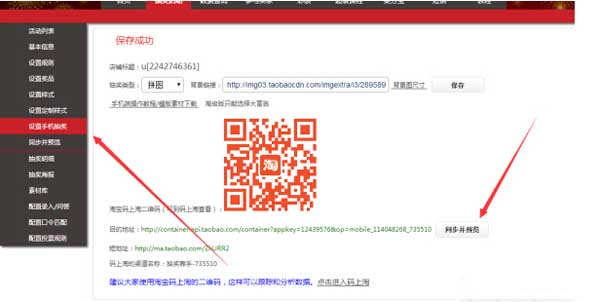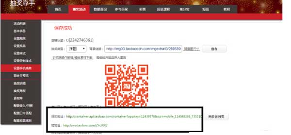 2、設(shè)置完成后,然后把該抽獎(jiǎng)活動(dòng)放到手機(jī)淘寶店鋪里面,有一點(diǎn)大家要清楚的是系統(tǒng)生成的鏈接是不能放上店鋪內(nèi),不過(guò)可以在微淘發(fā)布廣播,把發(fā)布后廣播鏈接擺放到店鋪內(nèi)就行了。