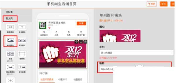 4、得到手機(jī)淘寶抽獎(jiǎng)鏈接之后,我們回到手機(jī)店鋪裝修頁(yè)面——圖文類(lèi)——如圖紅框所示——把鏈接添加進(jìn)去即可。