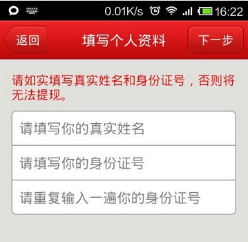 點(diǎn)擊注冊后,便會跳轉(zhuǎn)到填寫資料的頁面,填寫手機(jī)號碼和密碼,下一步就是身份的實(shí)名認(rèn)證,主要是想實(shí)名制,買賣雙方也有個(gè)保障。