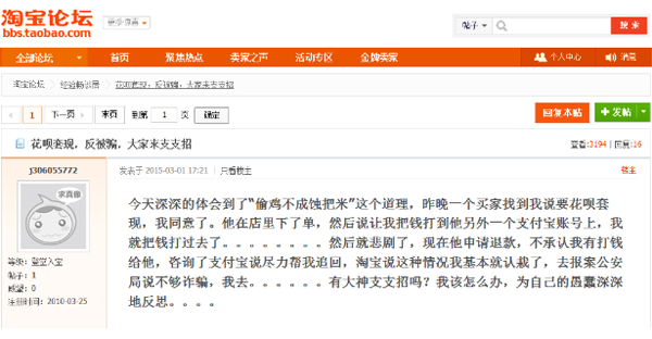 現(xiàn)在出現(xiàn)了很多花唄**的騙局,而這些騙局就是利用了QQ群、貼吧、社區(qū)等等的社交平臺,然后在這些平臺上打出9折、9.5折甚至是更低的折扣來吸引用戶。如果用戶一旦上當(dāng)了,他們就會聯(lián)系那些真正做花唄**的商家。接著就是按照淘寶購物流程,拍下產(chǎn)品付款之后,這些不法分子就會要求店家把錢打到他們的支付寶賬戶上的,接著把店家和用戶拉入黑名單。用戶沒有收到錢,就肯定會申請退款了,而店家那邊也沒有給用戶打款的記錄,就只有認(rèn)栽把錢退給顧客了。這樣的騙局還是有很多店家上當(dāng)?shù)?,尤其是新手店家,什么都不懂,以為這是真實的購物,但是只要各位店家謹(jǐn)慎、提防點,就能避免上當(dāng)了。