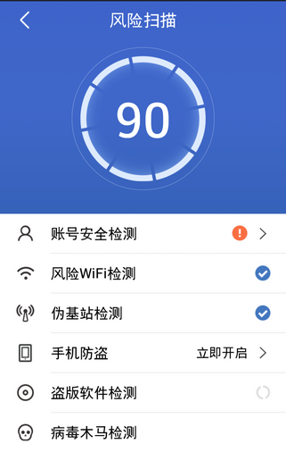 2.在掃描時,可以看到阿里錢盾對你手機(jī)中哪些東西進(jìn)行掃描的。