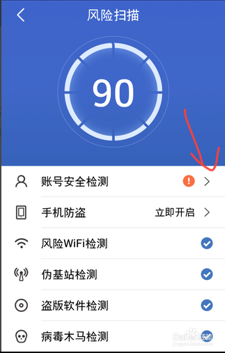 3.阿里錢盾掃描完畢之后,有打鉤說明沒有存在風(fēng)險,有驚嘆號就是存在危險的,點擊它,阿里錢盾會修復(fù)的。