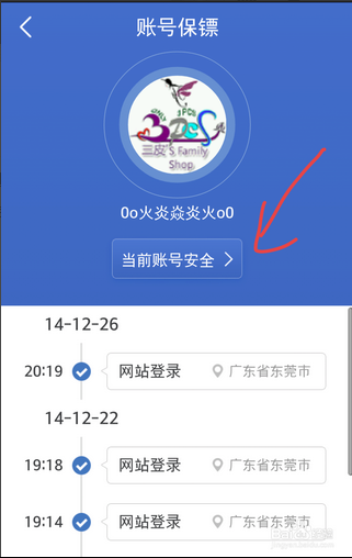 6.在這里可以看到自己最近在什么時間段那個地區(qū)登錄過,賬號是否安全。可以點擊“當(dāng)前賬號安全”。
