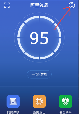 8.回到阿里錢盾界面,點擊界面右上角圖標(biāo),就會進(jìn)入個人中心。