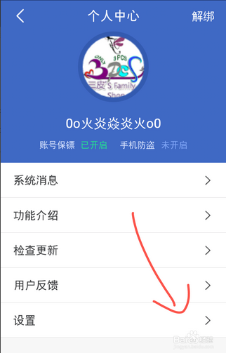 9.在阿里錢盾個人中心頁面,可以更新阿里錢盾的,同時接收系統(tǒng)的信息,在頁面下方“設(shè)置”中可以對阿里錢盾進(jìn)行設(shè)置的。