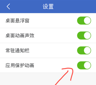 10.在設(shè)置頁面,圖標(biāo)懸浮在手機(jī)桌面,桌面動畫聲效、常駐通知欄等都可以設(shè)置的。