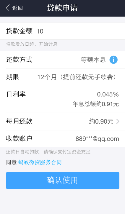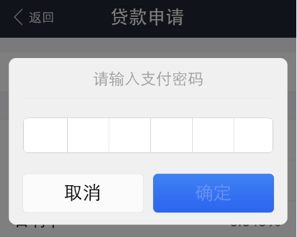 確認(rèn)后,我們把支付密碼和短信驗(yàn)證碼輸入后,即可完成貸款流程。