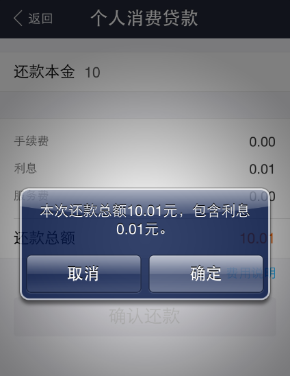 軟件也會(huì)提示你還款的總額和利息,還款時(shí)間越早那么利息也就越低了。
