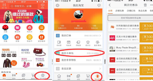 三、手機(jī)淘寶——我的淘寶——我的卡券包