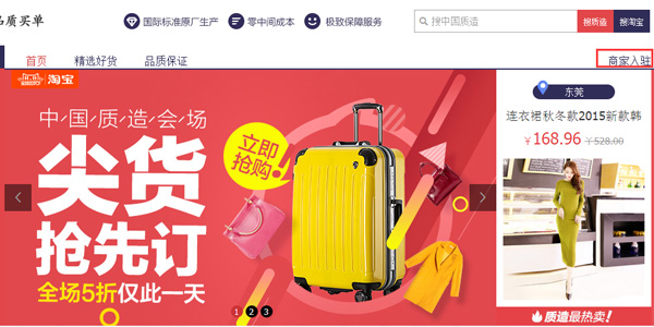 •       淘寶中國質(zhì)造頻道已經(jīng)正式上線,位于淘寶首頁右上角網(wǎng)站導(dǎo)航——特色購物——中國質(zhì)造。一個屬于國內(nèi)自主品牌的頻道,那么中國質(zhì)造怎樣入駐呢?下面為大家呈現(xiàn)淘寶中國質(zhì)造入駐流程。