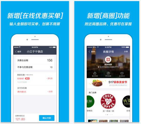 支付寶9.3除了萬眾期待的刷臉支付功能外,還新增更多有趣的功能,如:在線優(yōu)惠買單、商圈、余額寶明細升級等。
