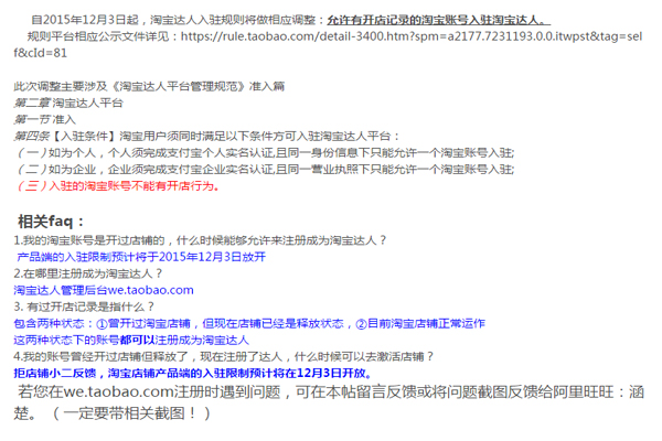 •      從今天起淘寶達(dá)人也能開網(wǎng)店了,原因就是淘寶對(duì)淘寶達(dá)人的入駐條件撤銷了,從原來(lái)的淘寶賬號(hào)沒有開店記錄,直接刪除。意味著淘寶達(dá)人開網(wǎng)店、接業(yè)務(wù)兩不誤。