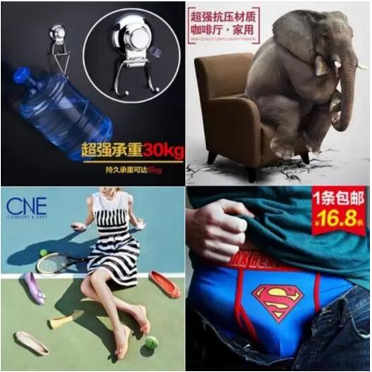 圖片是點擊率最直觀的原因,創(chuàng)意圖片既要突出賣點,又要和其他的圖片有差異化,比較考驗美工的實力。下面幾幅是我覺得比較好的圖片: