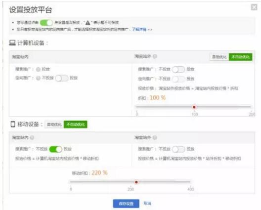 無線端的特點就是每屏顯示的寶貝數(shù)量少,首屏寶貝點擊量大,無線端的點擊率能夠達(dá)到PC端的3-4倍,所以一個提升點擊率的好方法,可以是提高移動端的投放比例,重點優(yōu)化無線端,優(yōu)化一段時間后,點擊率會有較大的提高。