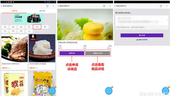 二、找到喜歡的商品后點(diǎn)擊進(jìn)入試用頁面,您可以直接申請,或者先查看寶貝詳情。