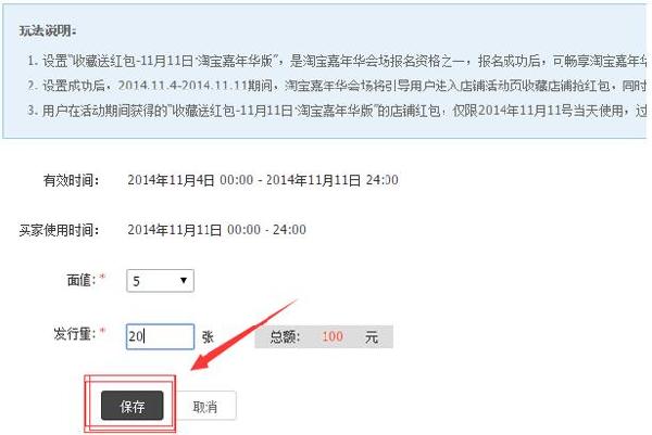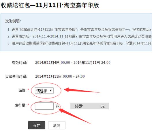 四、我們看到了“收藏送紅包—11月11日淘寶嘉年華版”活動(dòng)的有效日期,我們把下方的內(nèi)容填寫完整