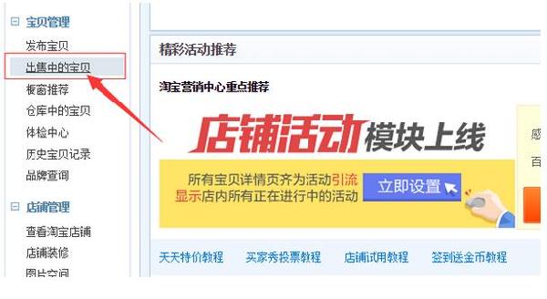 十、在“賣家中心”頁面的左側(cè)往下看,我們就能找到一個(gè)名叫“出售中的寶貝”按鈕,我們點(diǎn)擊它