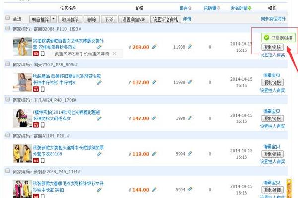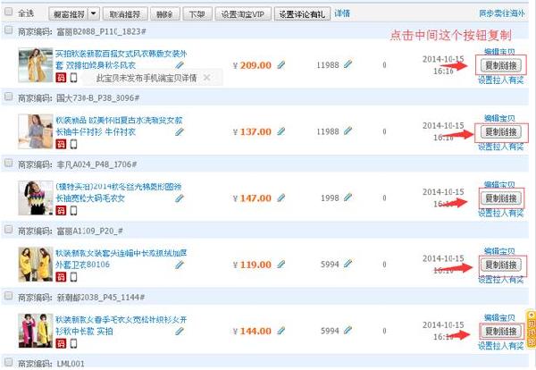 十二、在每一個(gè)寶貝的旁邊都會(huì)有一個(gè)“復(fù)制鏈接”的按鈕,我們點(diǎn)擊復(fù)制它
