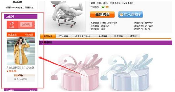 二十、將誒下來我們就能從“默認(rèn)寶貝詳情頁”的左側(cè)看到領(lǐng)取紅包活動(dòng)了