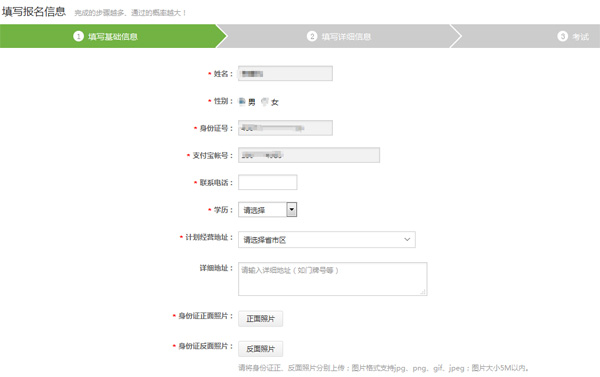 4.隨后就進(jìn)入這樣一個申請頁面,基礎(chǔ)信息、詳細(xì)信息填寫完畢后,進(jìn)入考試環(huán)節(jié)。