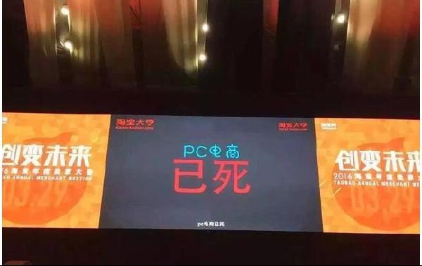 在大會現(xiàn)場,有一張PPT甚是醒目,中間寫著:PC電商已死!
