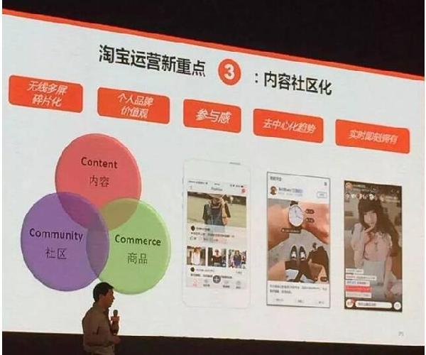 ?、诿總€淘寶行業(yè)運營團隊都要有人專職做內(nèi)容運營,基于社區(qū)做內(nèi)容運營,而資訊和內(nèi)容生產(chǎn)者應(yīng)該是所有商家、所有合作伙伴。