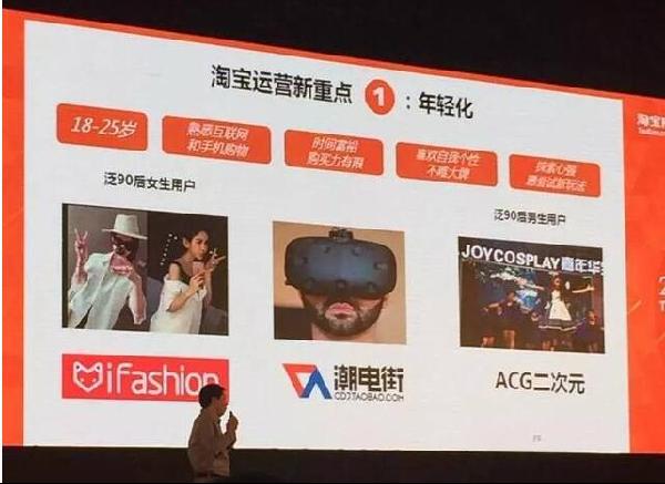 ?、軓倪\營商品到運營內(nèi)容,從商品市場發(fā)展為消費者社區(qū)的過程中,2016年淘寶抓住的第一個群體將是年輕人——無線時代的原住民。淘寶平臺將推動形成一個個圍繞時尚潮流、數(shù)碼玩家、電競世界、二次元、體育迷、軍事迷等各種主題的年輕人小社區(qū)。