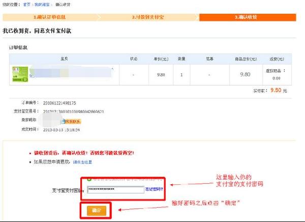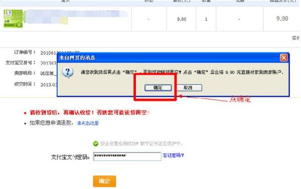 然后再輸入支付包支付密碼截圖,點擊確定,如下與所示: