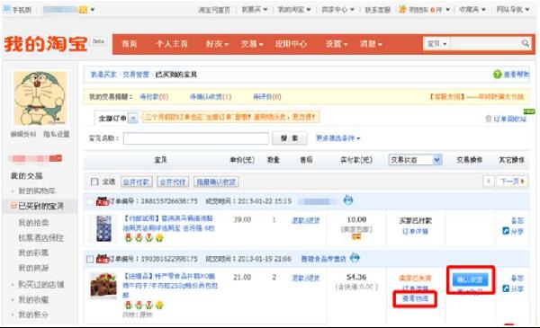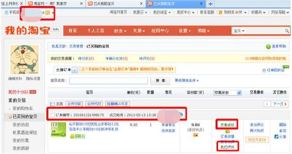 回到“已買到的寶貝”頁面截“交易成功”的圖片給押款人(下圖紅線所圈內(nèi) 容必須全部截上)