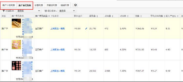 通過推廣單元列表分析,我們可以知道賬戶中每個計劃、每個推廣寶貝效果情況,助您決策分析推廣的款式和數(shù)量。哪些點擊率高,哪些款式受歡迎,選定潛力款和主推款。