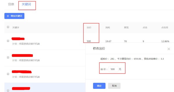 2.點(diǎn)擊進(jìn)入建立的明星店鋪計(jì)劃---關(guān)鍵字即可對關(guān)鍵字進(jìn)行出價(jià)修改