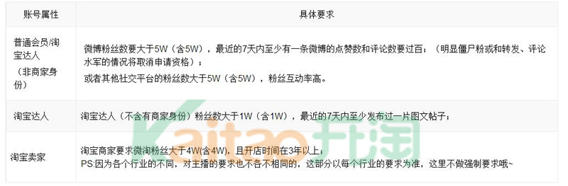 第二,根據(jù)賬號(hào)屬性的不同,具體的要求也不同,具體見下表: