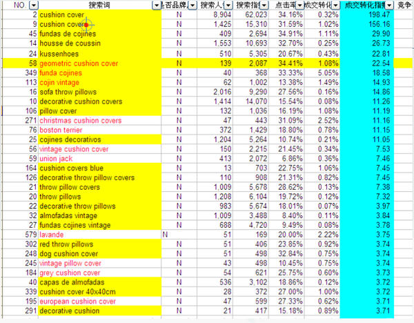 速賣通賣家可以在熱搜詞中下載最近30天原始數(shù)據(jù),做成Excel表格,然后點(diǎn)擊表格中的感嘆號(hào),按ctrl+shift+↓全選表格,將表格轉(zhuǎn)化為數(shù)字?! ?/p>