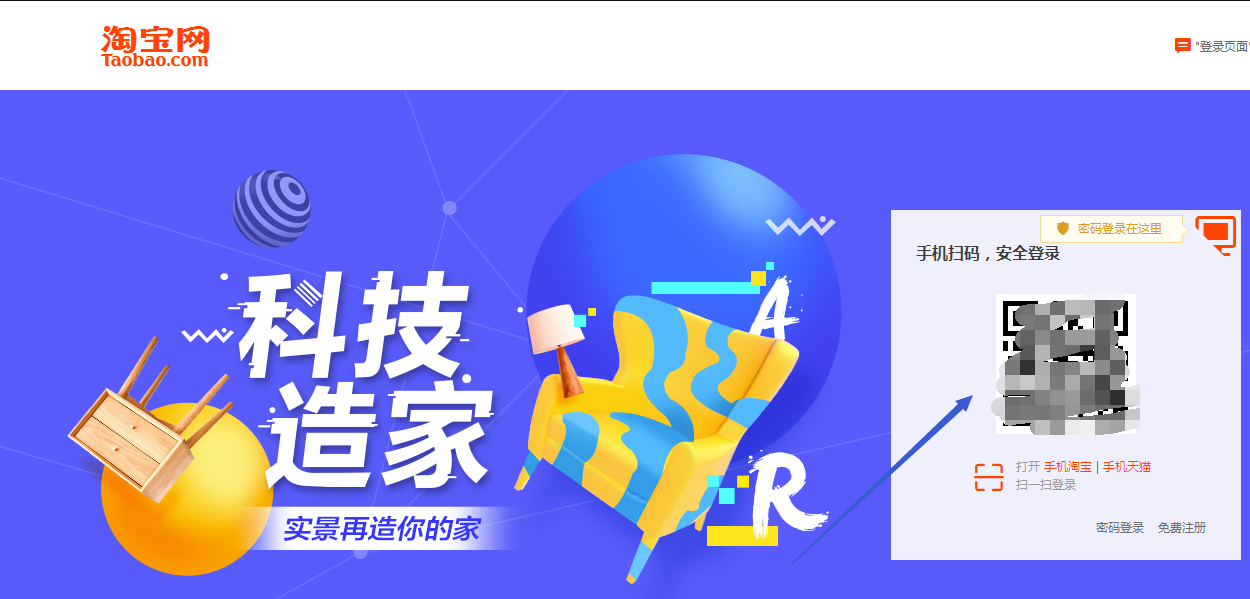 入駐淘寶服務(wù)市場平臺步驟二: 點擊打開登陸界面,用手機(jī)淘寶掃一掃二維碼登陸操作。