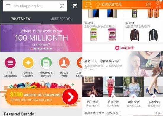 速賣通移動端(圖左)和淘寶移動端(圖右)