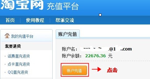 路徑:“淘寶充值平臺”—“賬戶管理”—“賬戶充值”。后續(xù)步驟同上文“第二步”起。