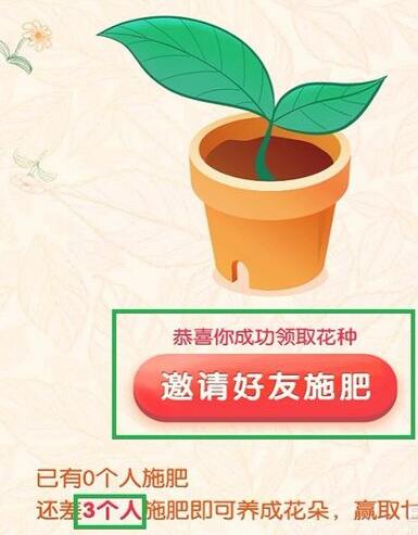 4.當(dāng)我們成功領(lǐng)取種子后,邀請3個(gè)好友施肥即可養(yǎng)成花。